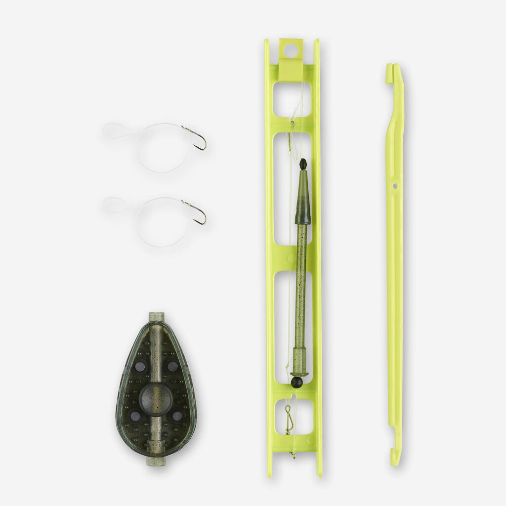 Ovaj komplet, spreman za upotrebu, omogućava vam da odmah pecate fider tehnikom (sitna riba) ili metod fider tehnikom (krupna riba). Sadrži dve unapred pripremljene strune i osnovne dodatke.