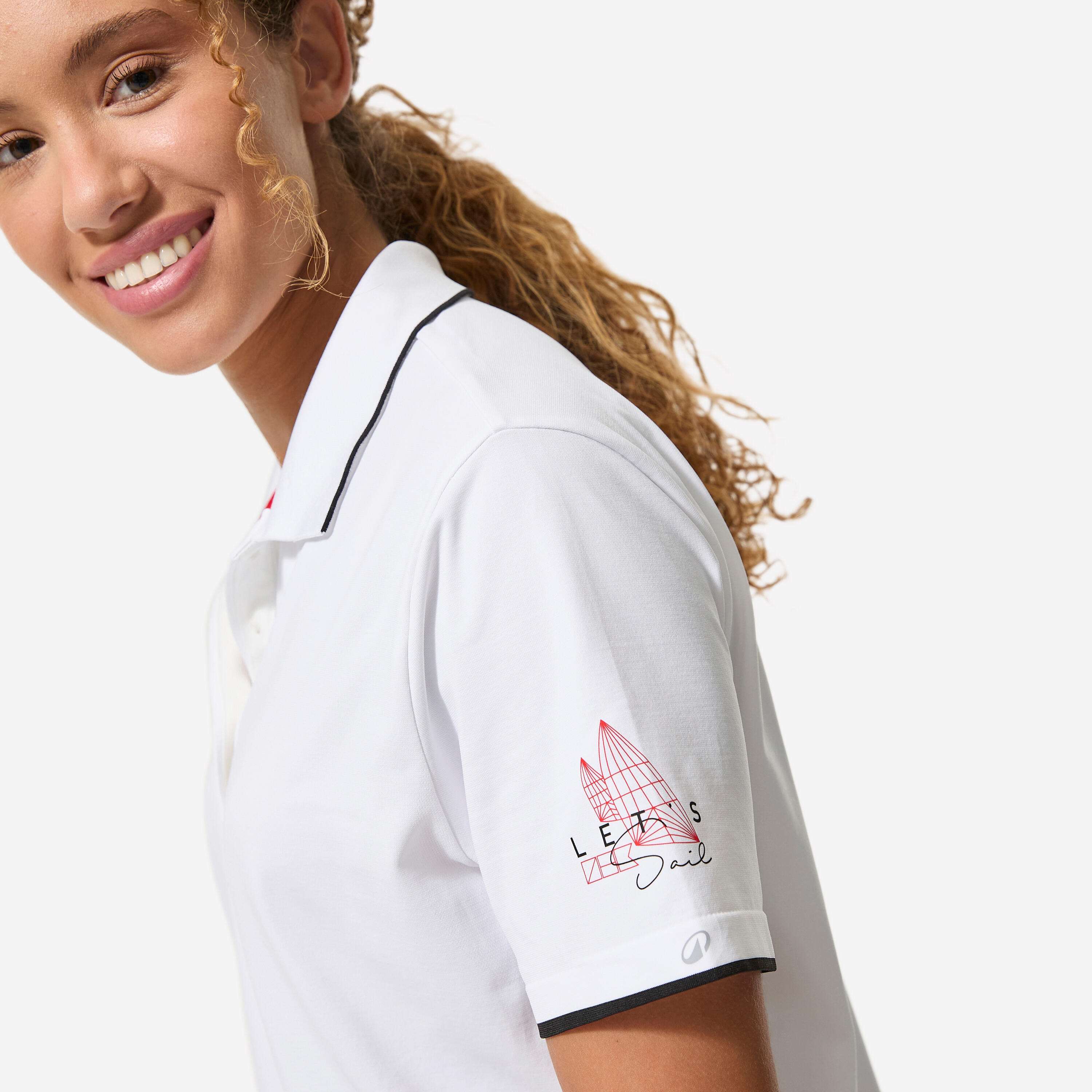 Bela ženska polo majica za jedrenje 500