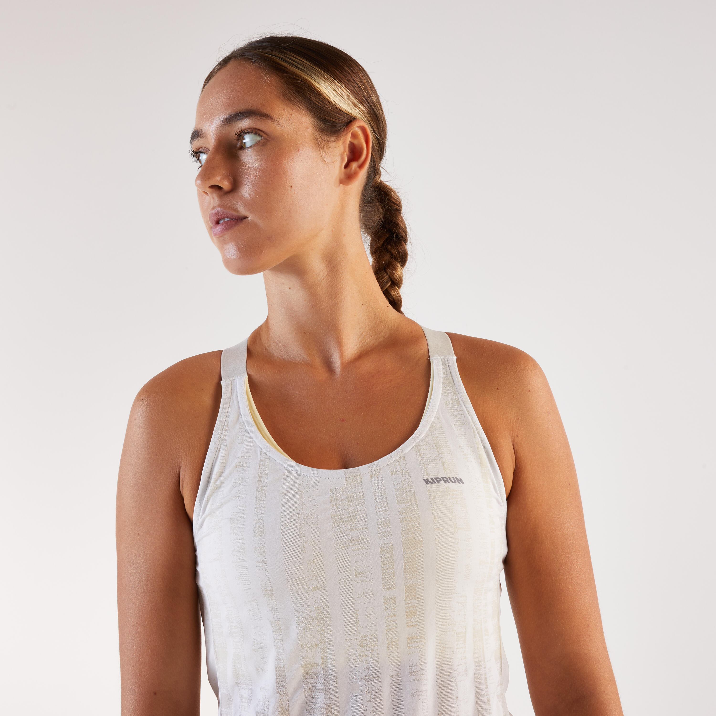 Majica bez rukava za trčanje Kiprun Run 500 Comfort sa grudnjakom ženska - bež