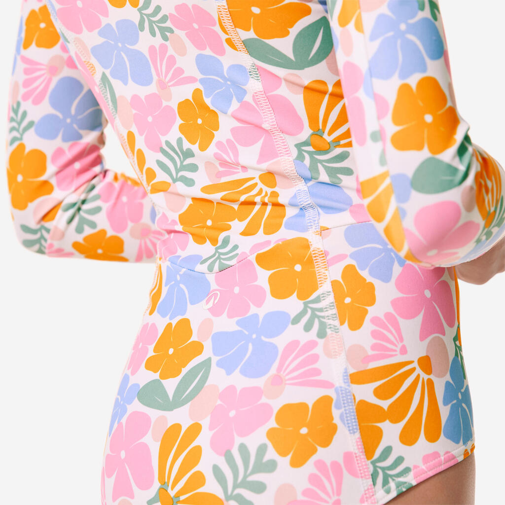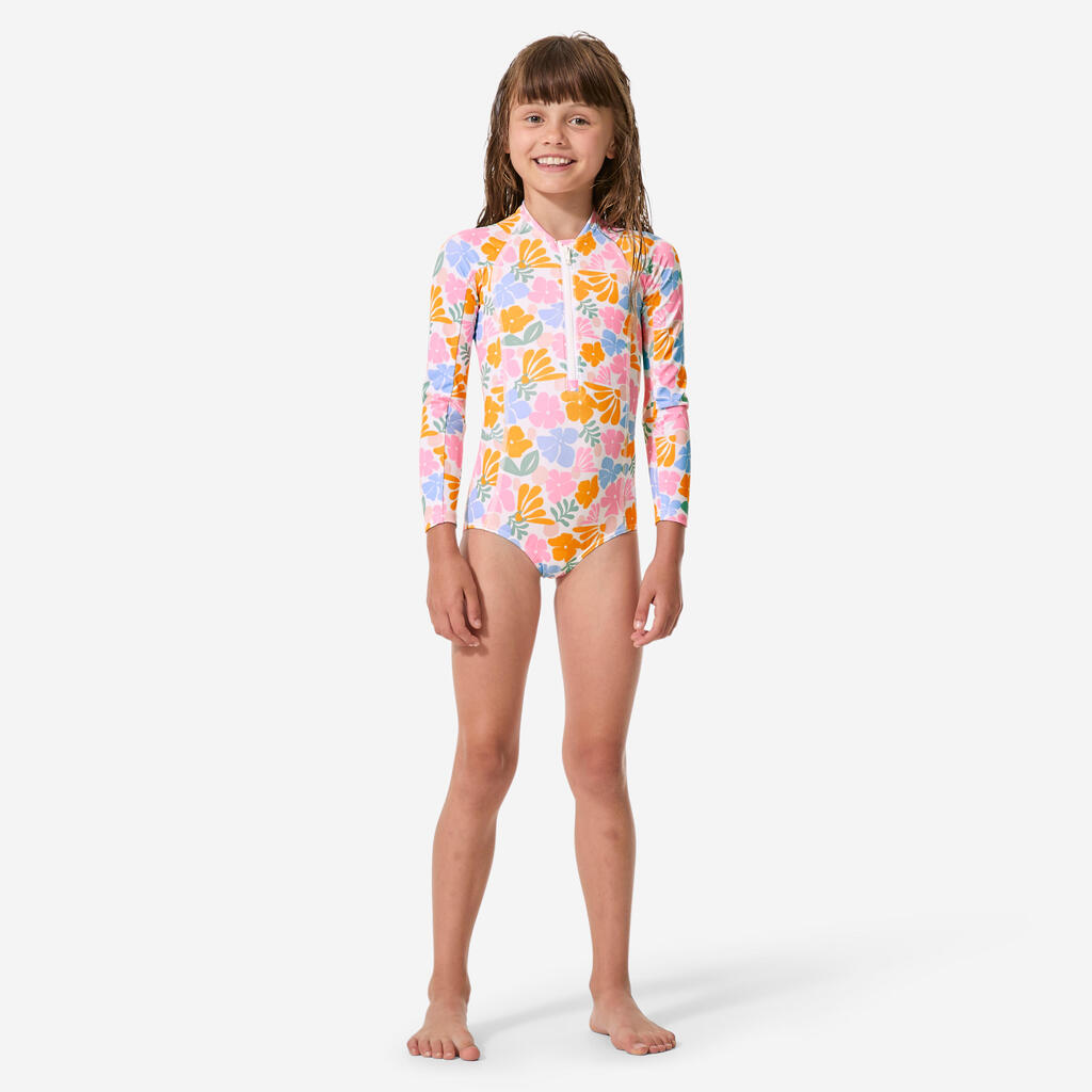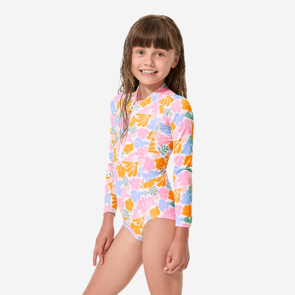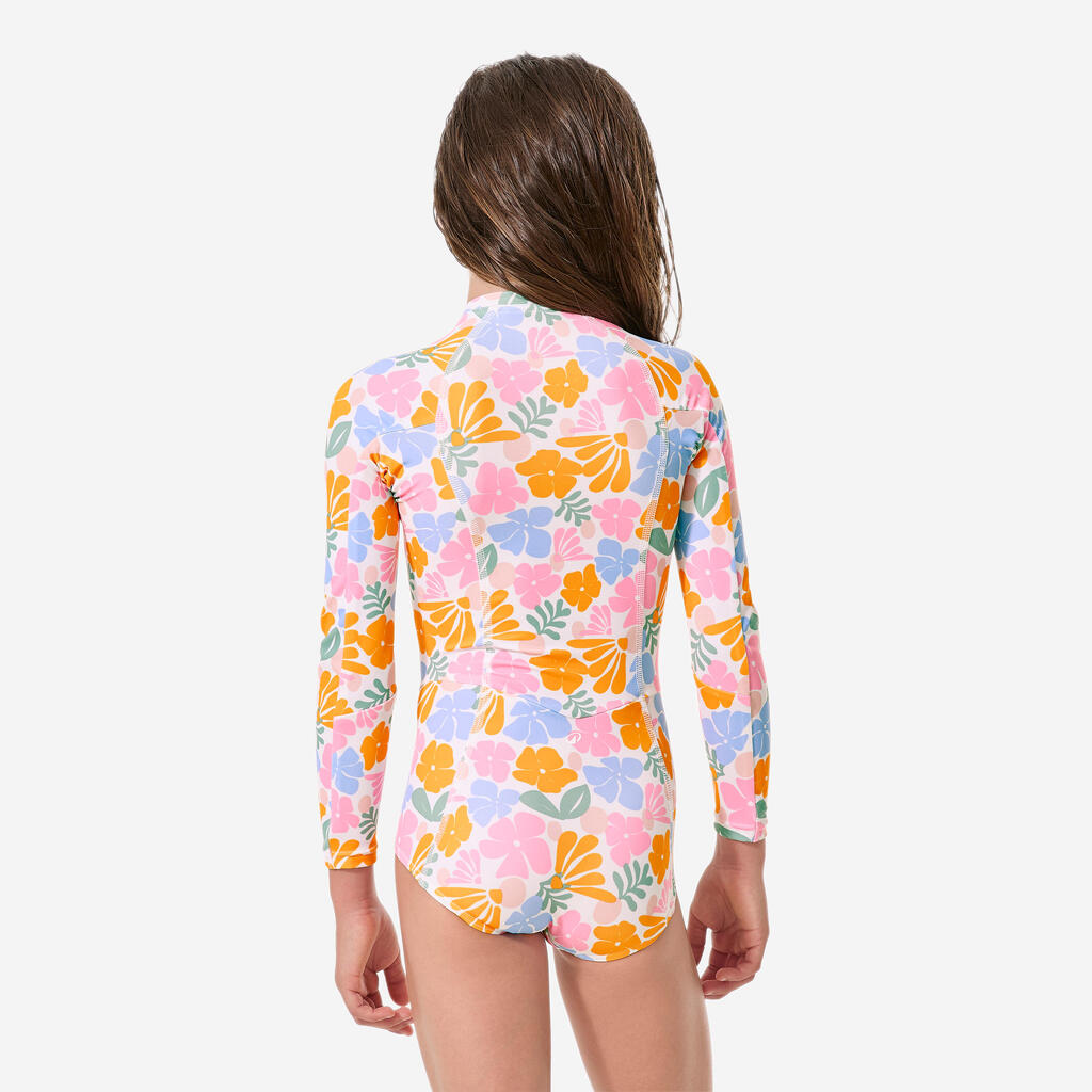 Ovaj jednodelni kupaći kostim sa dugim rukavima i UV zaštitom UPF 50+ namenjen je zaštiti devojčica od sunca tokom aktivnosti u vodi.