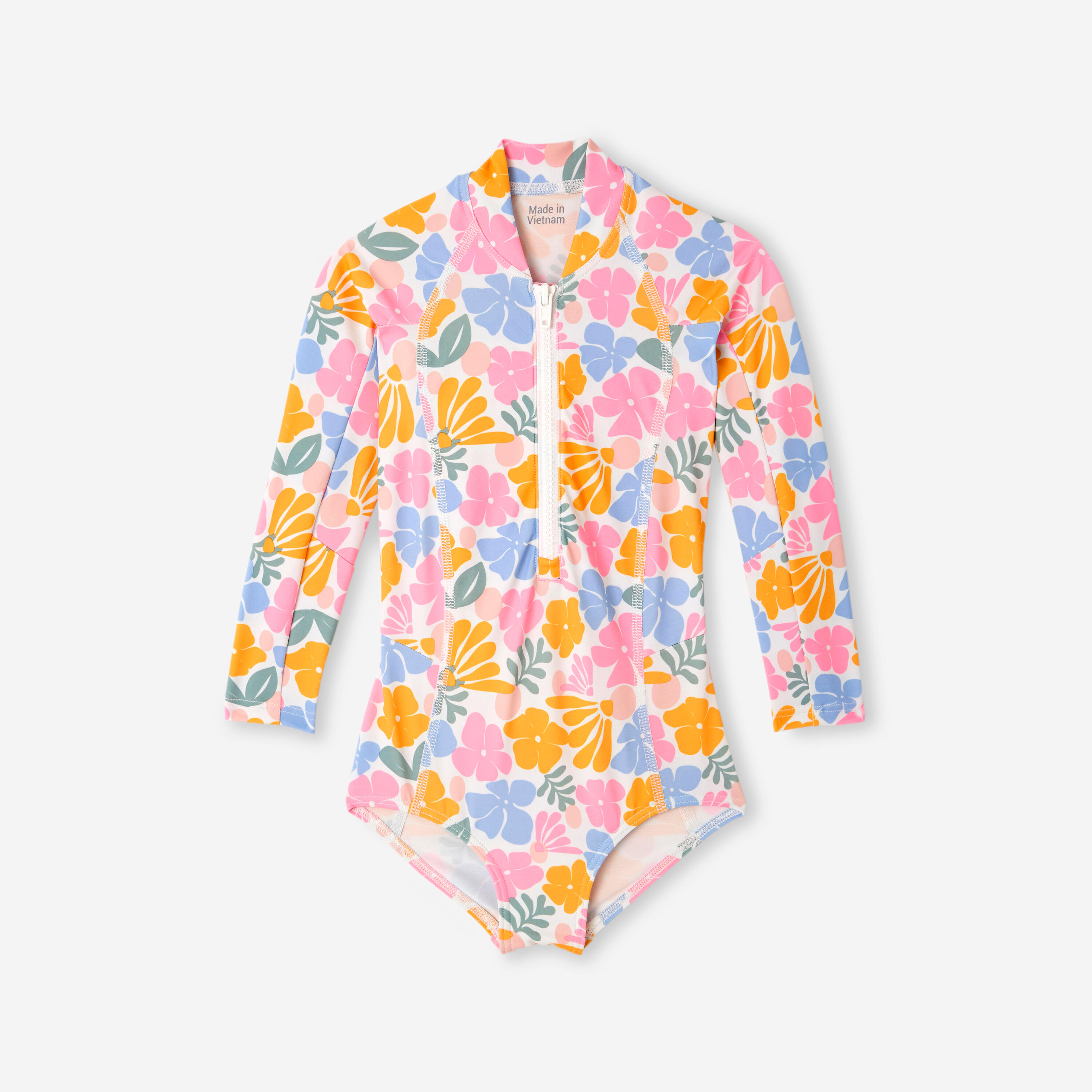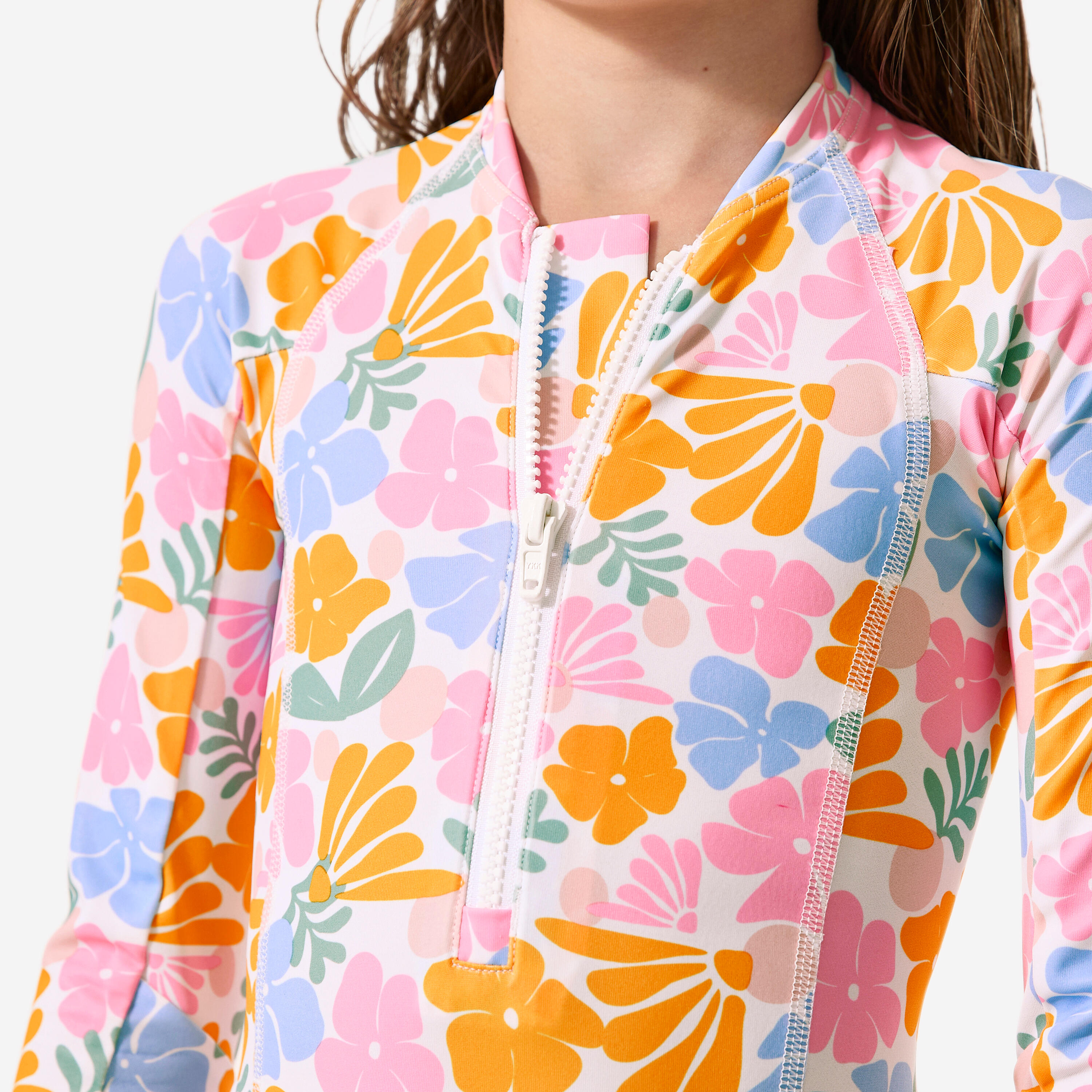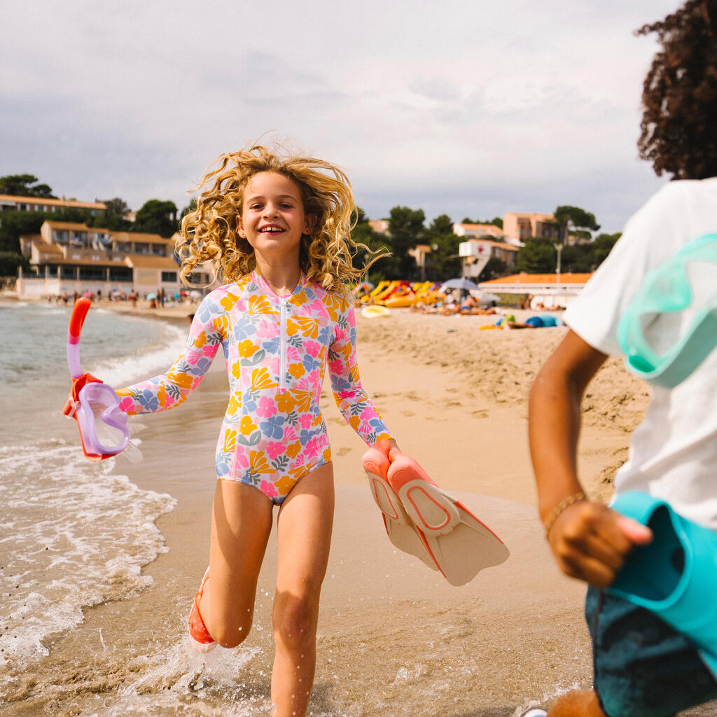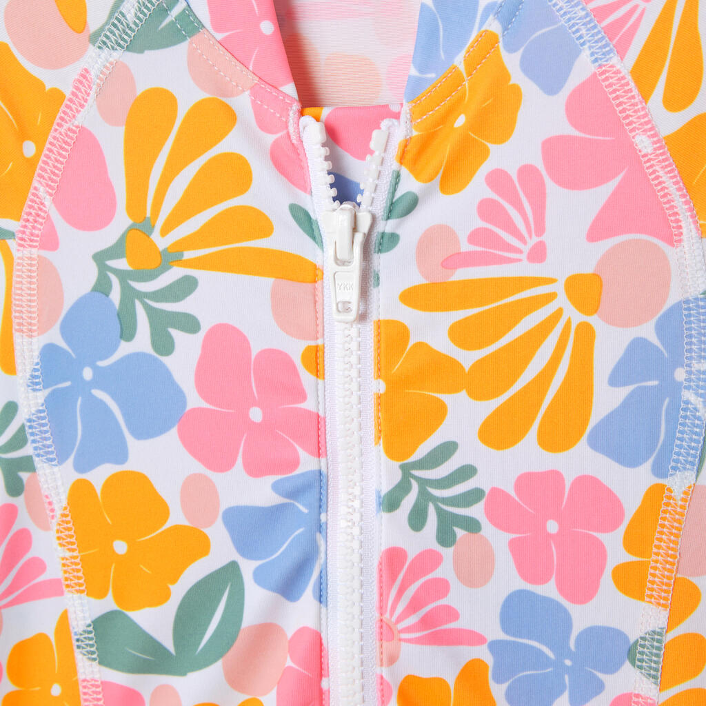 Ovaj jednodelni kupaći kostim sa dugim rukavima i UV zaštitom UPF 50+ namenjen je zaštiti devojčica od sunca tokom aktivnosti u vodi.