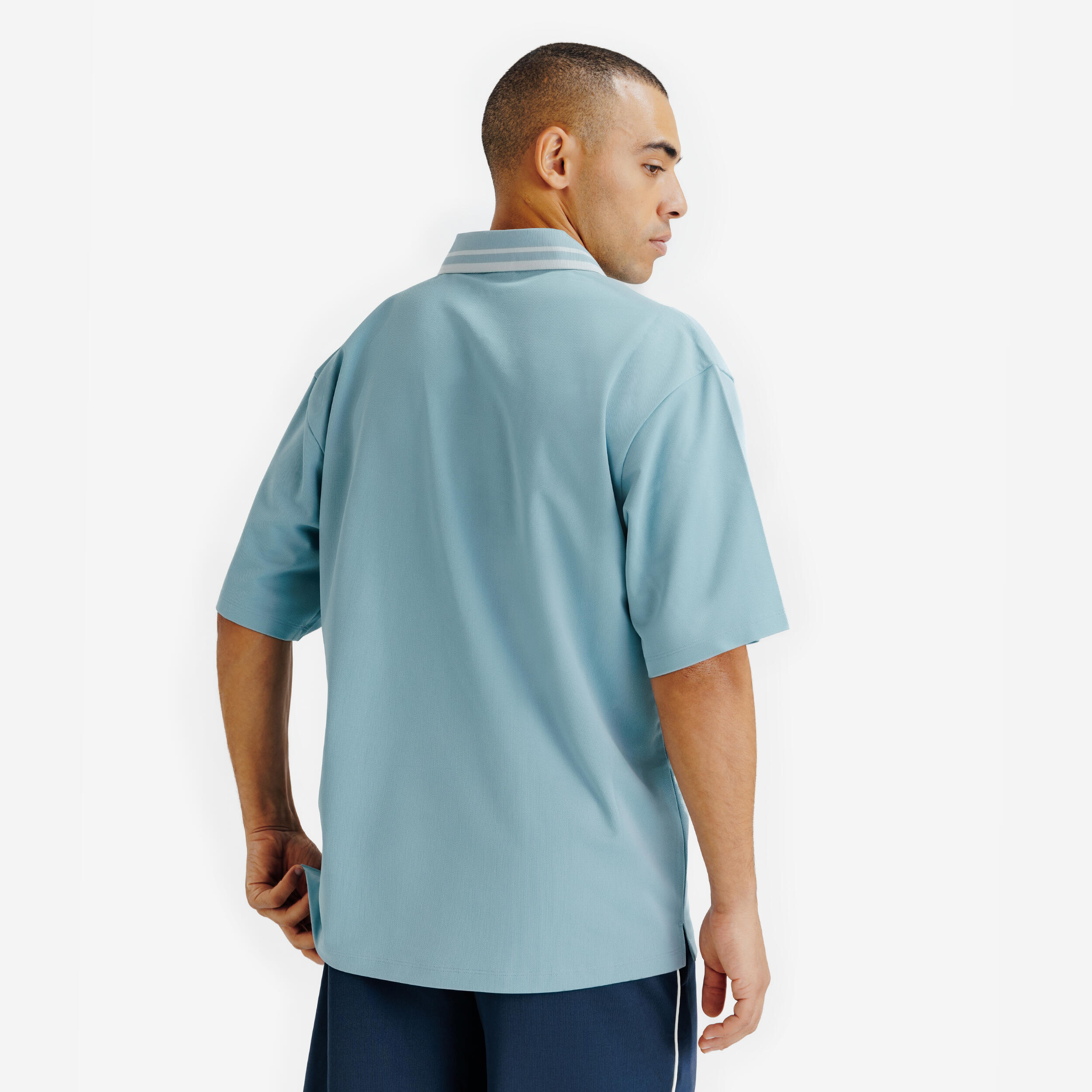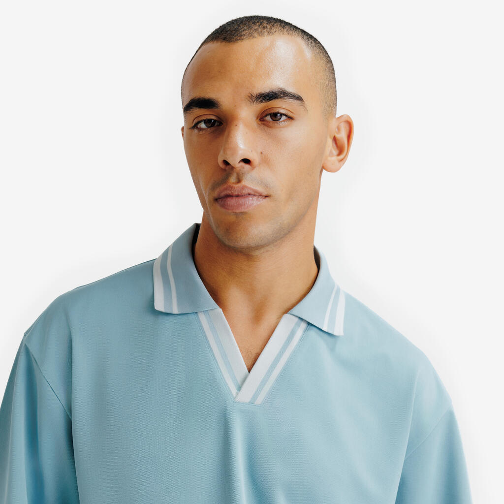Jednostavna i elegantna, ova široka polo majica sa spuštenim ramenima je savršenog oblika sa opuštenim stilom. Njena kragna obezbeđuje besprekorno prianjanje.