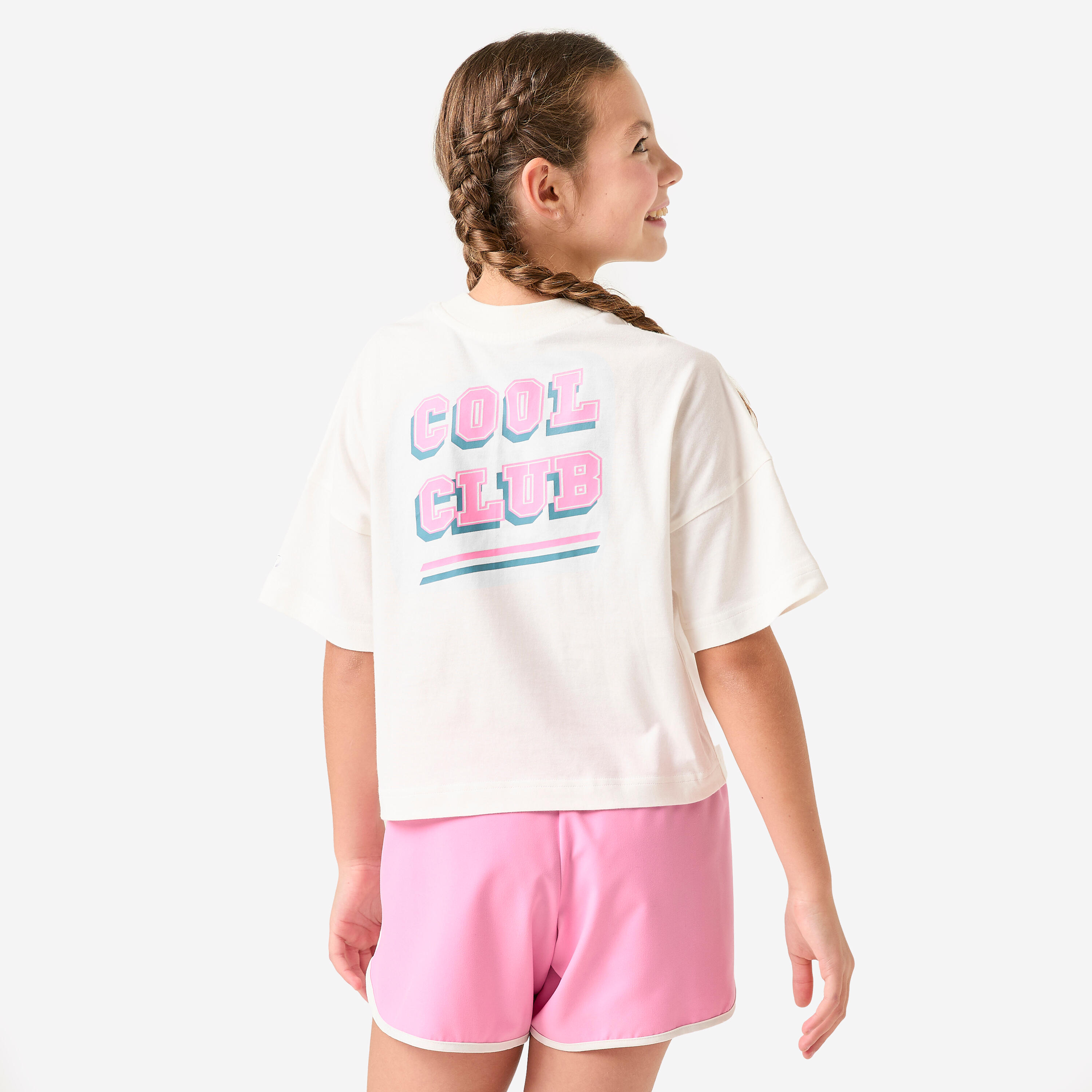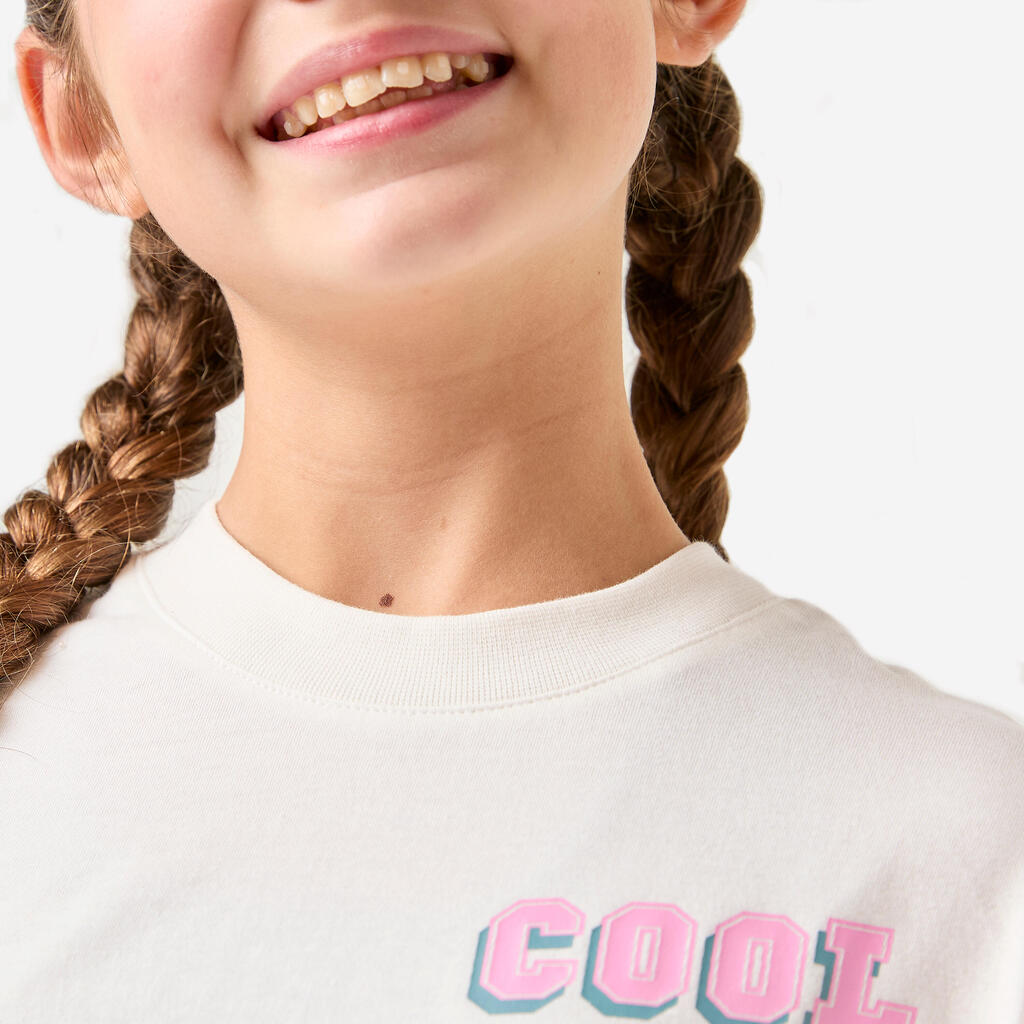 Bela oversize pamučna majica kratkih rukava za devojčice