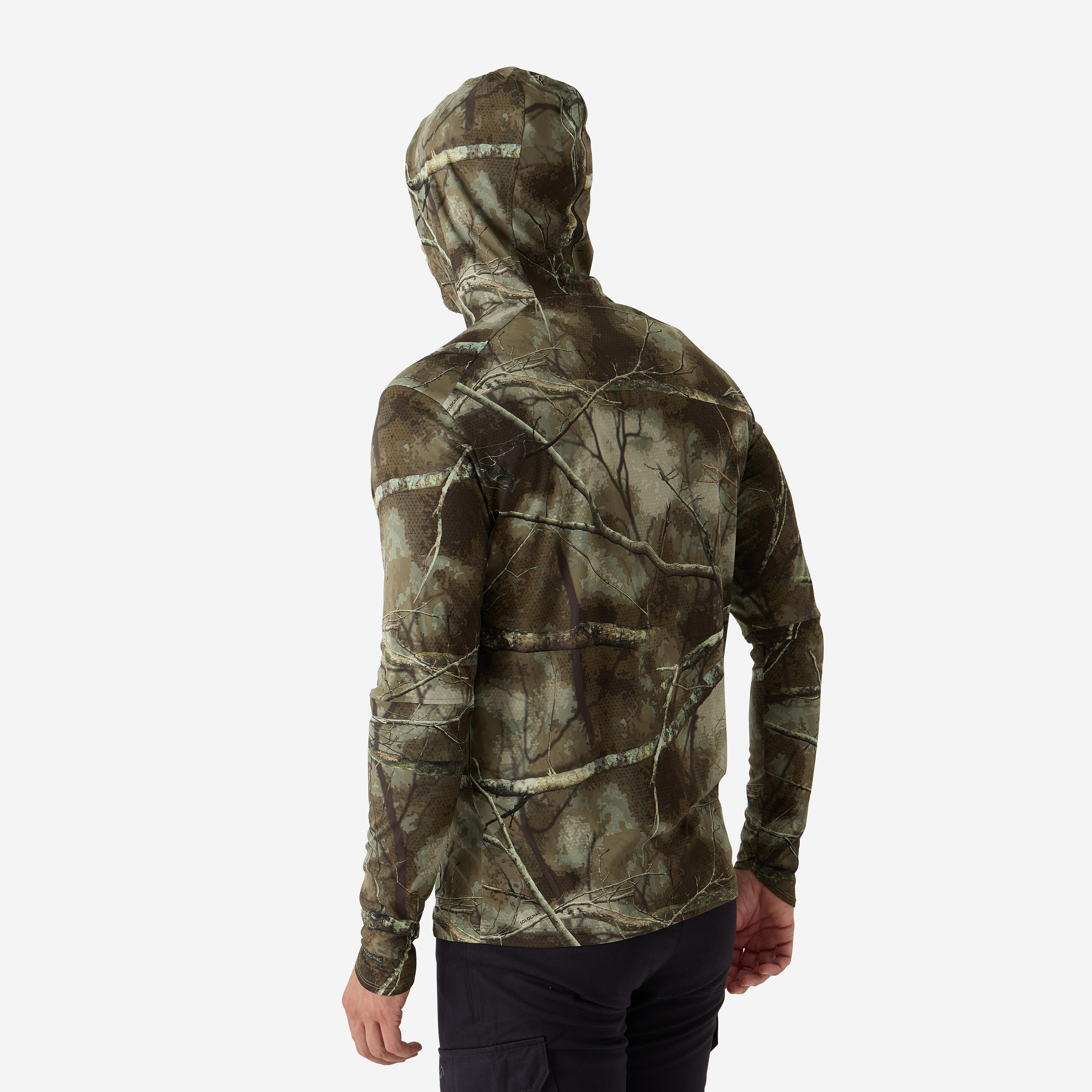Ova majica dugih rukava sa kapuljačom omogućava lov u kamuflaži po sunčanim danima, jer obezbeđuje zaštitu od sunčevog zračenja.