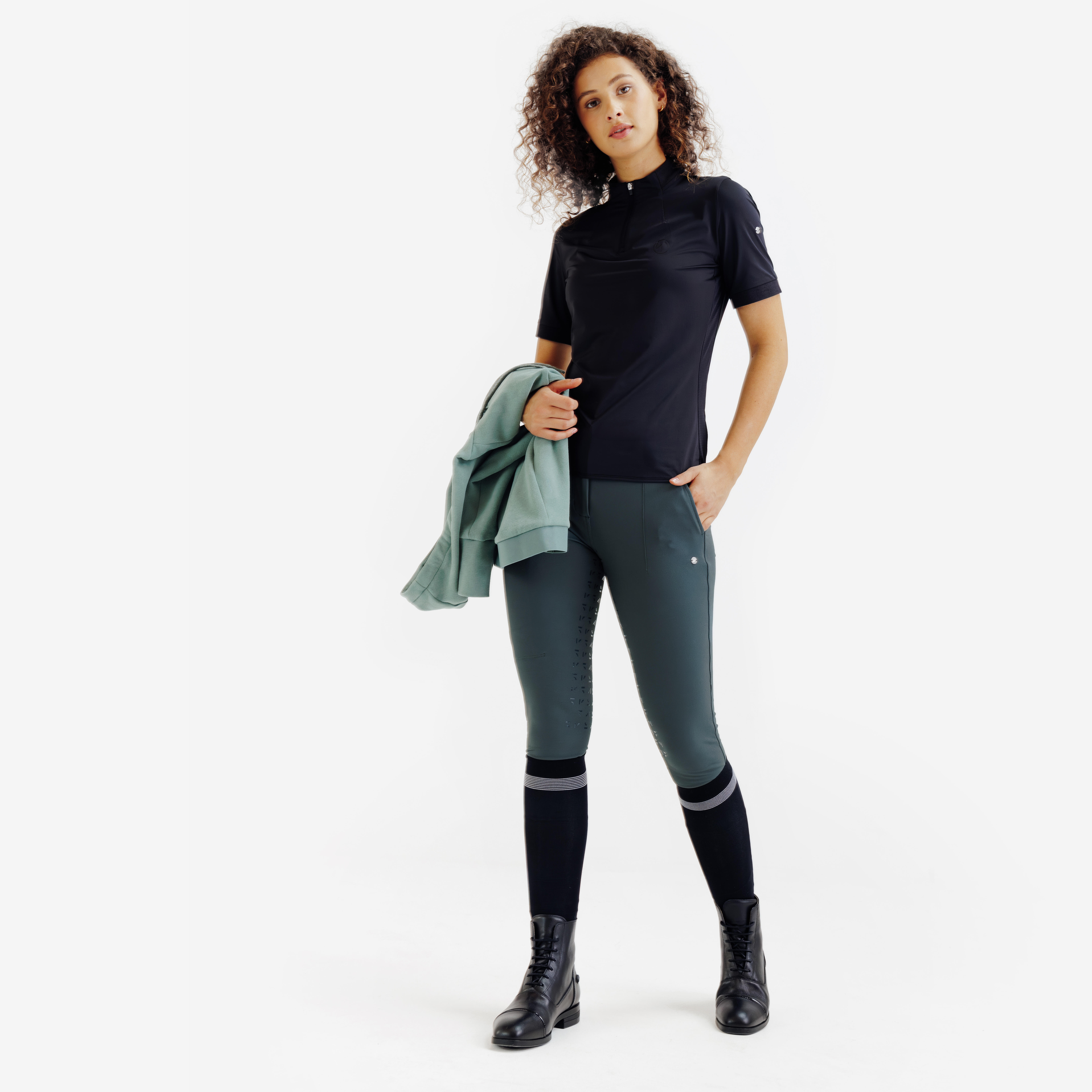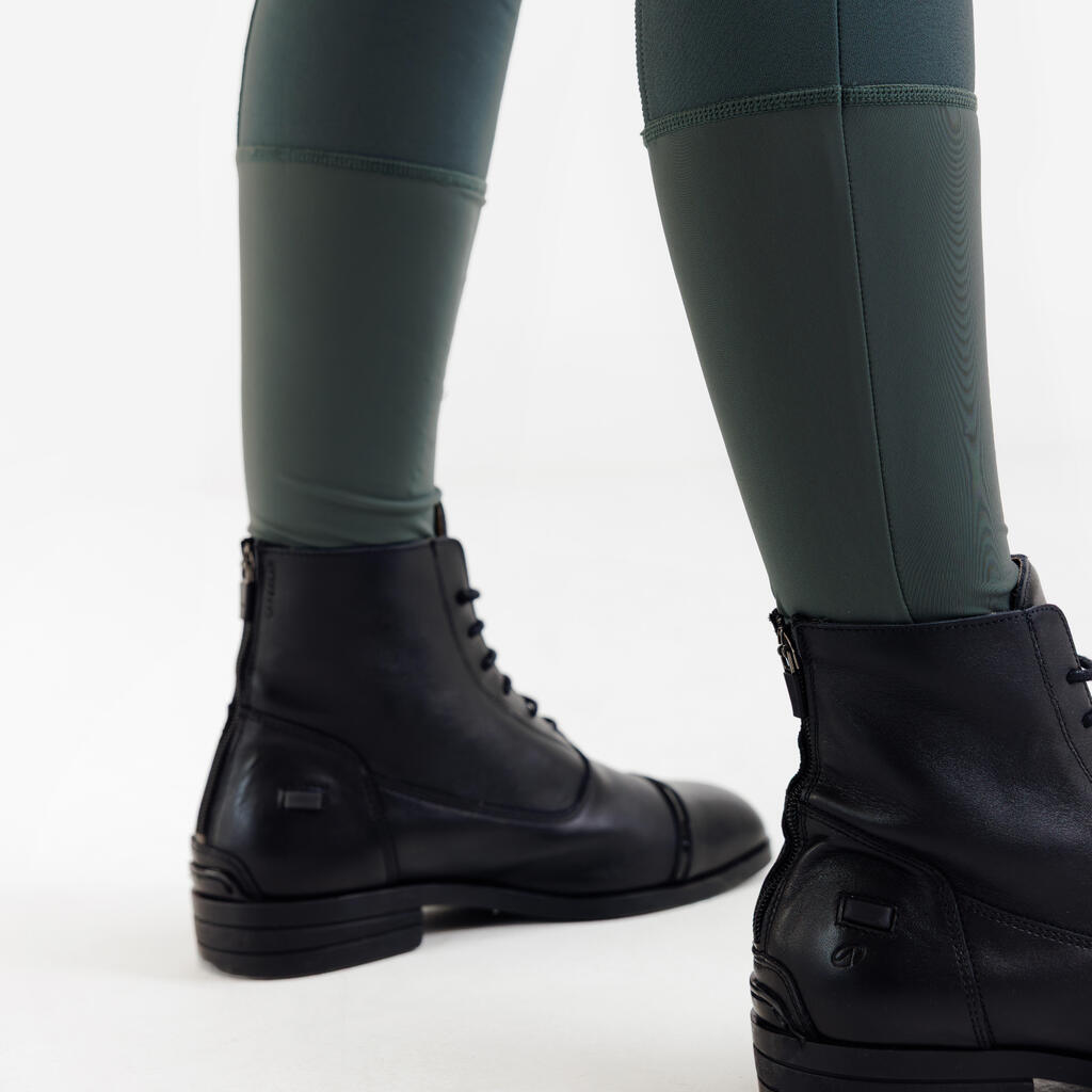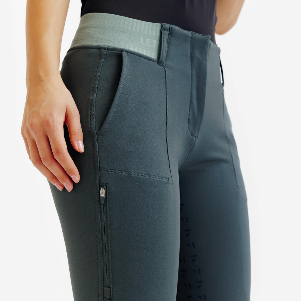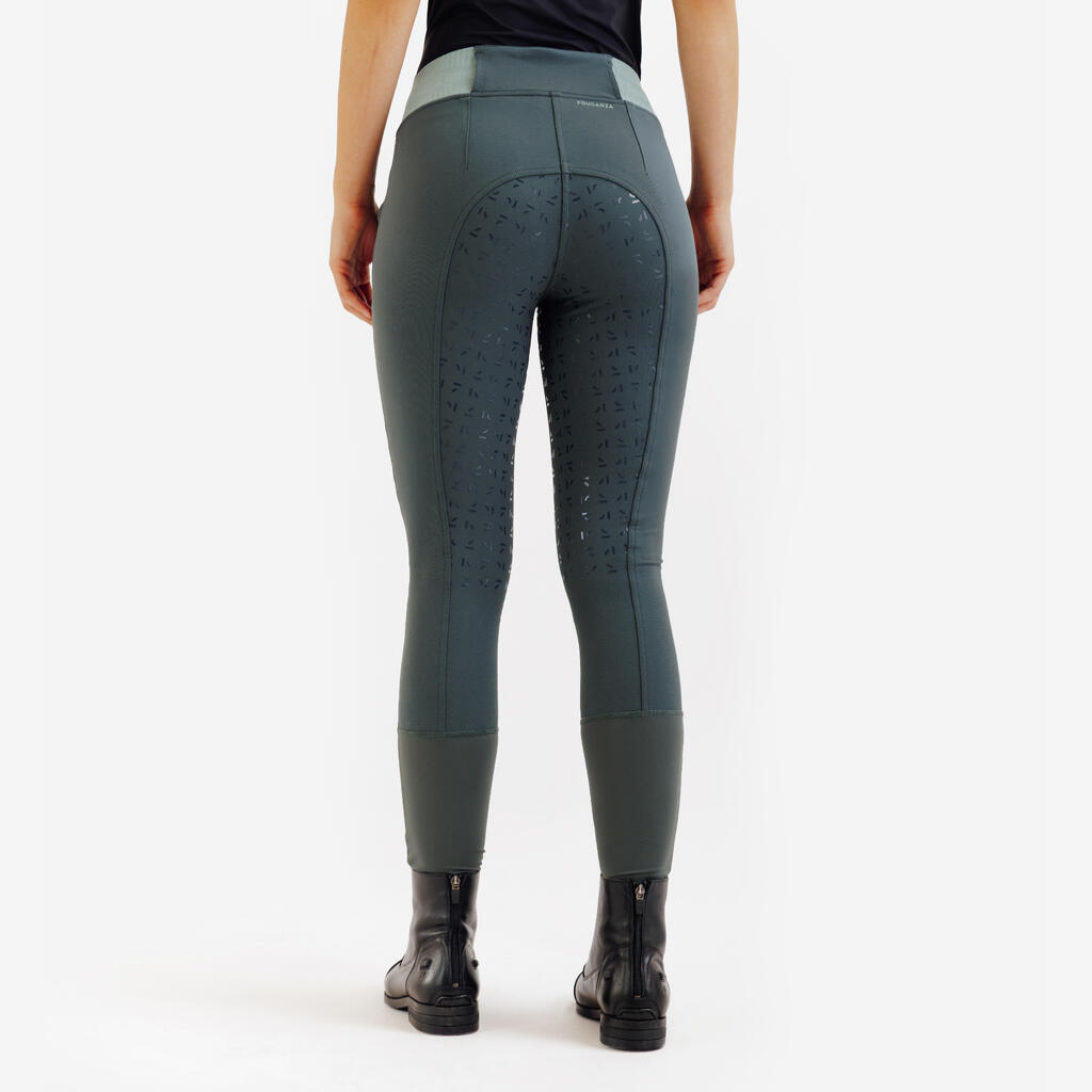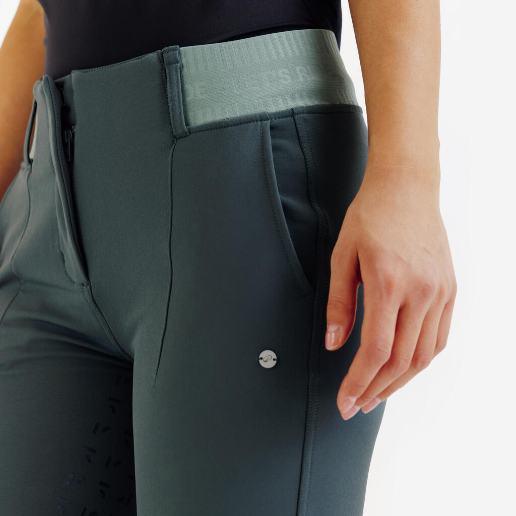 Zelene ženske pantalone za jahanje sa potpunim prianjanjem 500 Be You